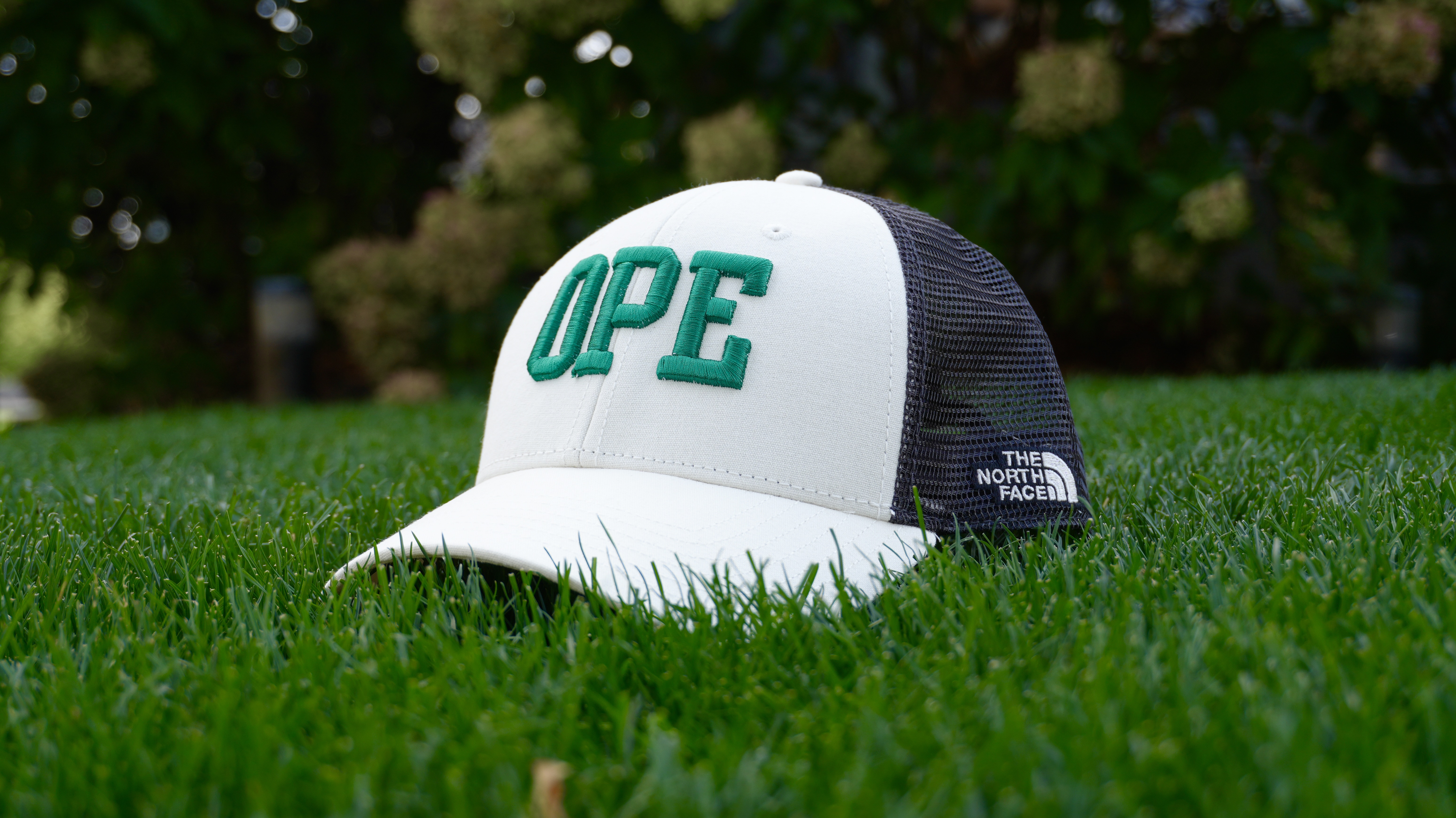 Featuring perforated back panels, 3D grass blade patch, and custom Ope | It's Mow Time logo tag, this can be worn flat or curved to your liking. It has an integrated cotton sweatband, ventilation eyelets and is finished with a plastic snap closure for a perfect fit.
